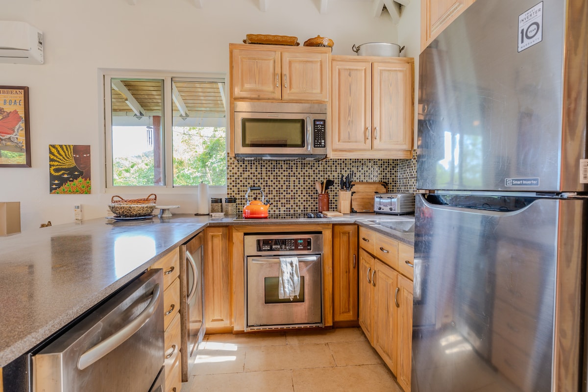 Studio house at Guavaberry Spring Bay located only a three minute walk from Spring Bay beach. Perfect for couples or a solo traveller! The house does not have air conditioning, but has screened louvered windows to capture the fresh tropical breezes. There is also a floor fan and ceiling fan.