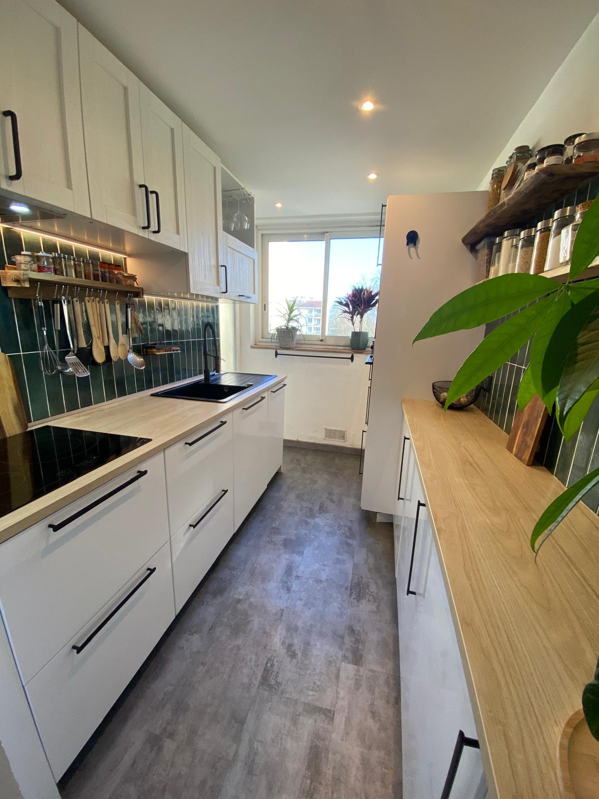 In a detached house (no other occupants in the house) An apartment renovated in 2020, bathed in sunlight, overlooking the garden: Entrance, living room, fully-equipped kitchen, one bedroom (one 160 cm bed) and one bedroom with two 90 cm beds that can be combined to make a 180 cm bed), shower room, separate toilet. Outdoor space with garden table and chairs. Easy and free street parking
