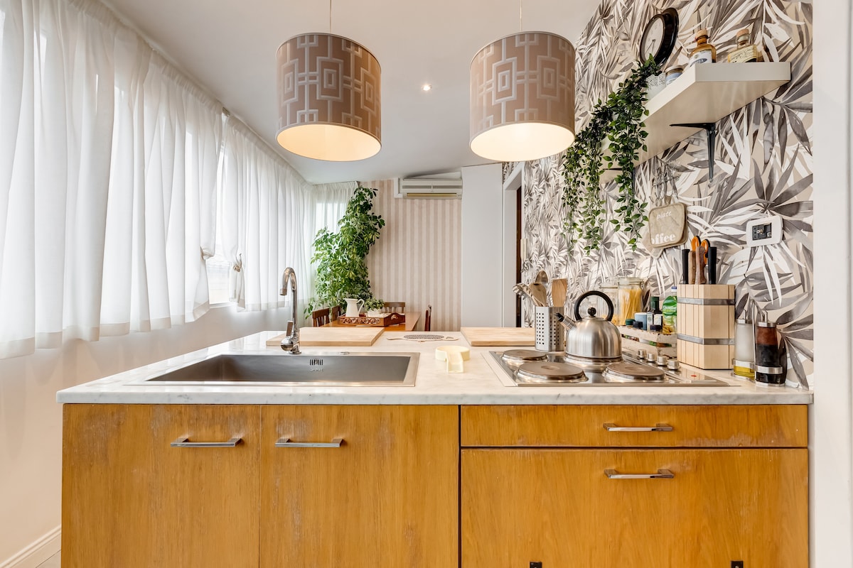 Just 200 m from the Vatican Museums, in an elegant historic building, this apartment blends timeless charm with modern comfort. 1904 floors, late 19th-century tiles, and Tiffany-style glass coexist with contemporary amenities. Furnishings from European capitals create a refined, warm atmosphere where every detail tells a story, making your stay in Rome unique and unforgettable.