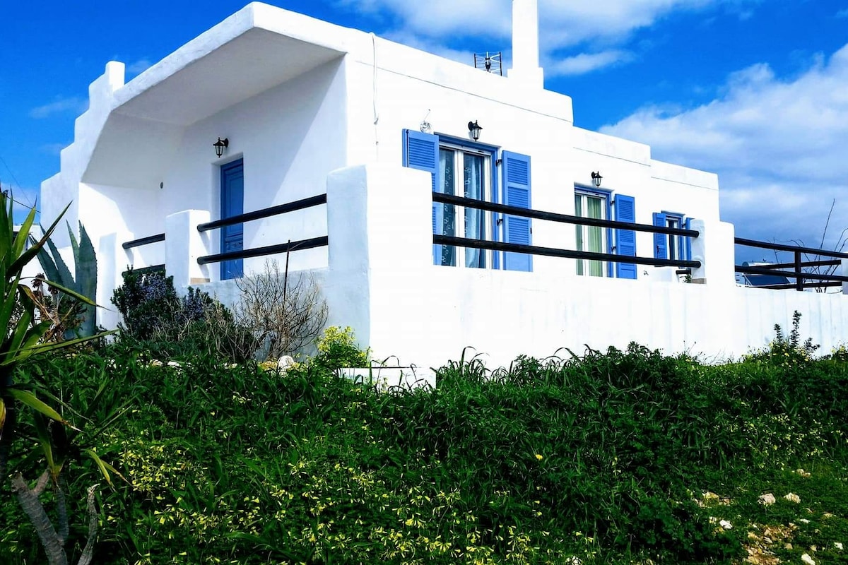 It is a traditional Cycladic first floor house, independent with its own large verandas overlooking the sea and wonderful sunsets. It is located in a very quiet location which is a ten-minute walk from the village. (Cemented, illuminated road). Kitchenette for cooking and large sink in the outdoor area. On one terrace there is a double bed for sunbathing or for sleeping in the arms of..... the stars!!!!!!