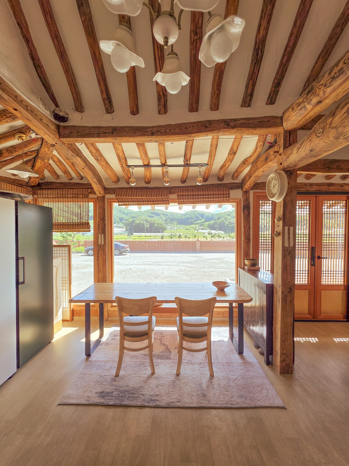 Emotional Healing Trip with Friends 🫧 Barbecue party🍖 with fireworks🎇 (✨Free✨) You can spend a peaceful and quiet time with your family. It is located in a quiet and natural village surrounded by parks, mountains, and lakes. Feel the coolness and atmosphere in Hanok reborn with a modern sense🌿 🐶 The puppy is growing (since 2021.01) Are you afraid of dogs? Please let us know. ☺️ → For those who are afraid of dogs 🐾 The dog will be in a cage or a separate space for a while. 🥲 Parents' chats can be abrupt. If you meet them, they are warm people.