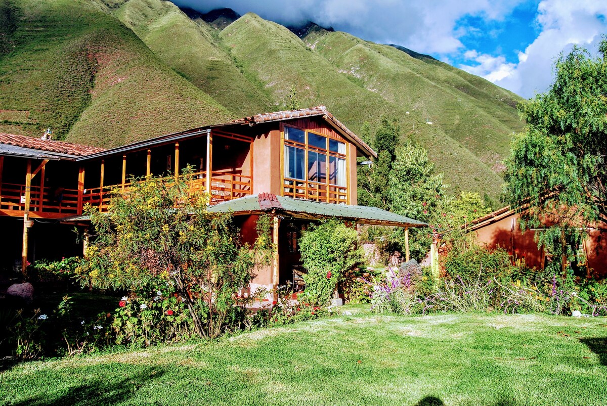 Bienvenido a nuestra casa de huéspedes, un espacio cálido rodeado de un hermoso jardín, ideal para quienes buscan tranquilidad y contacto con la naturaleza. Su construcción en adobe mantiene los espacios cálidos todo el año y cuenta con dos cómodas habitaciones y un espacio social acogedor. Cerca de transporte público y a 5 minutos en carro del centro de Urubamba.