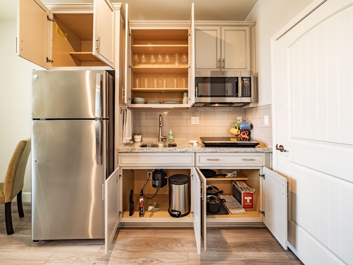 Welcome to the Golden Roseville Luxe Retreat! This guesthouse boasts high ceilings and luxurious finishes, from Calacatta quartz countertops to a stunning floor-to-ceiling tiled bathroom with glass accents. The space is fully equipped with all kitchen essentials, coffee, tea, a washer/dryer, fast Wi-Fi, and a dedicated workstation. Thoughtfully designed for comfort and convenience, it's the perfect blend of elegance and practicality for a relaxing stay!