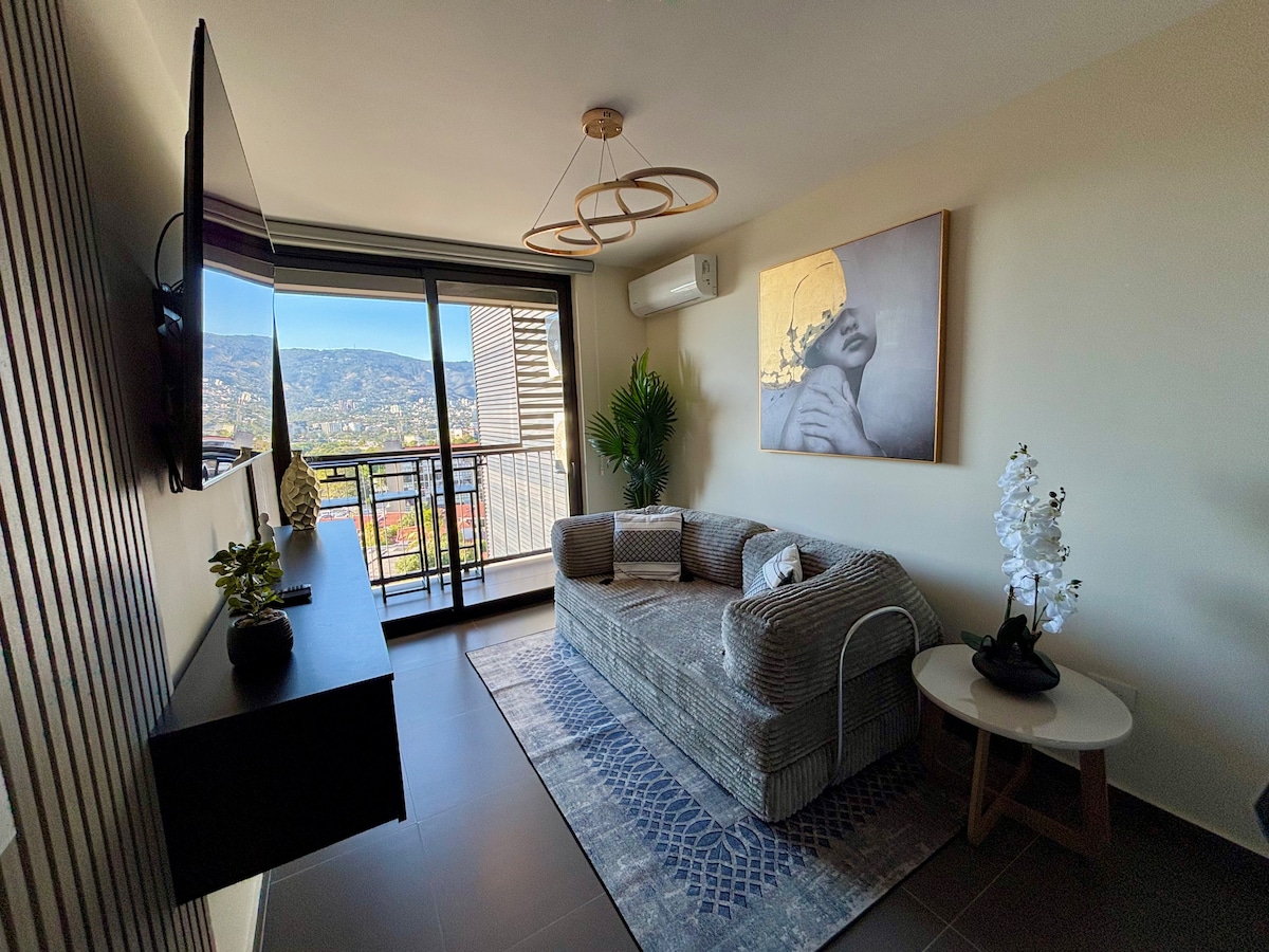Feel the experience of staying in a new apartment in the beautiful country of El Salvador. Our apartment with modern and elegant touches that accompany an unparalleled view, provide calm and tranquility in one of the most exclusive and safe areas of our country. The tower has a swimming pool, gym, and social areas. You'll have the opportunity to stay close to malls, restaurants, bars, and minutes from supermarkets.