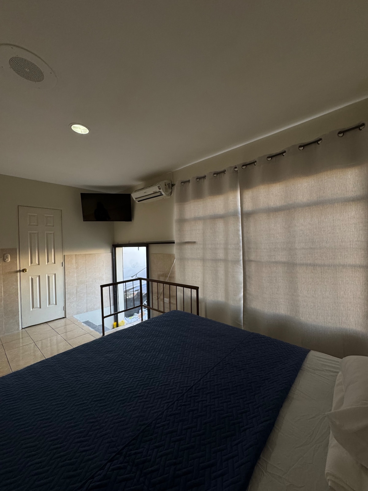 Disfruta una estadía con estilo en esta suite tipo estudio ubicada en una de las zonas más exclusivas y céntricas de Nuevo Cuscatlán. A pocos minutos de la Embajada Americana y de los principales centros comerciales, este espacio ofrece un ambiente fresco, privado y sumamente agradable. Cuenta con todas las comodidades necesarias para una estancia confortable, además de acceso a las áreas verdes de la residencial, donde podrás disfrutar de piscina, baños, cancha de basketball y un entorno seguro