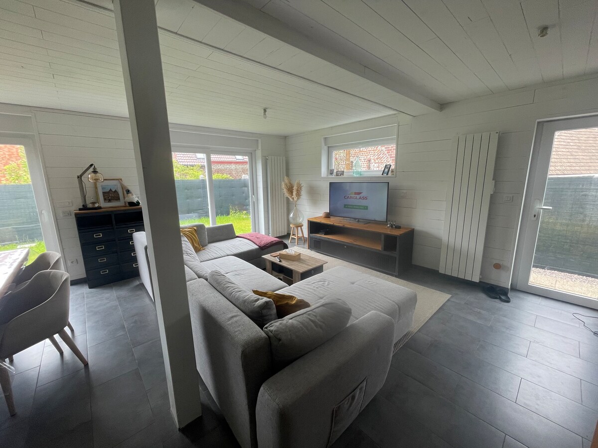 Fully renovated and decorated house in the heart of the village of Rosult, just a few steps from the bakery, located in the heart of the Scarpe Escaut Regional Nature Park. It offers all the comforts in a soft and welcoming atmosphere. Enjoy a large peaceful garden, perfect for relaxing in peace.