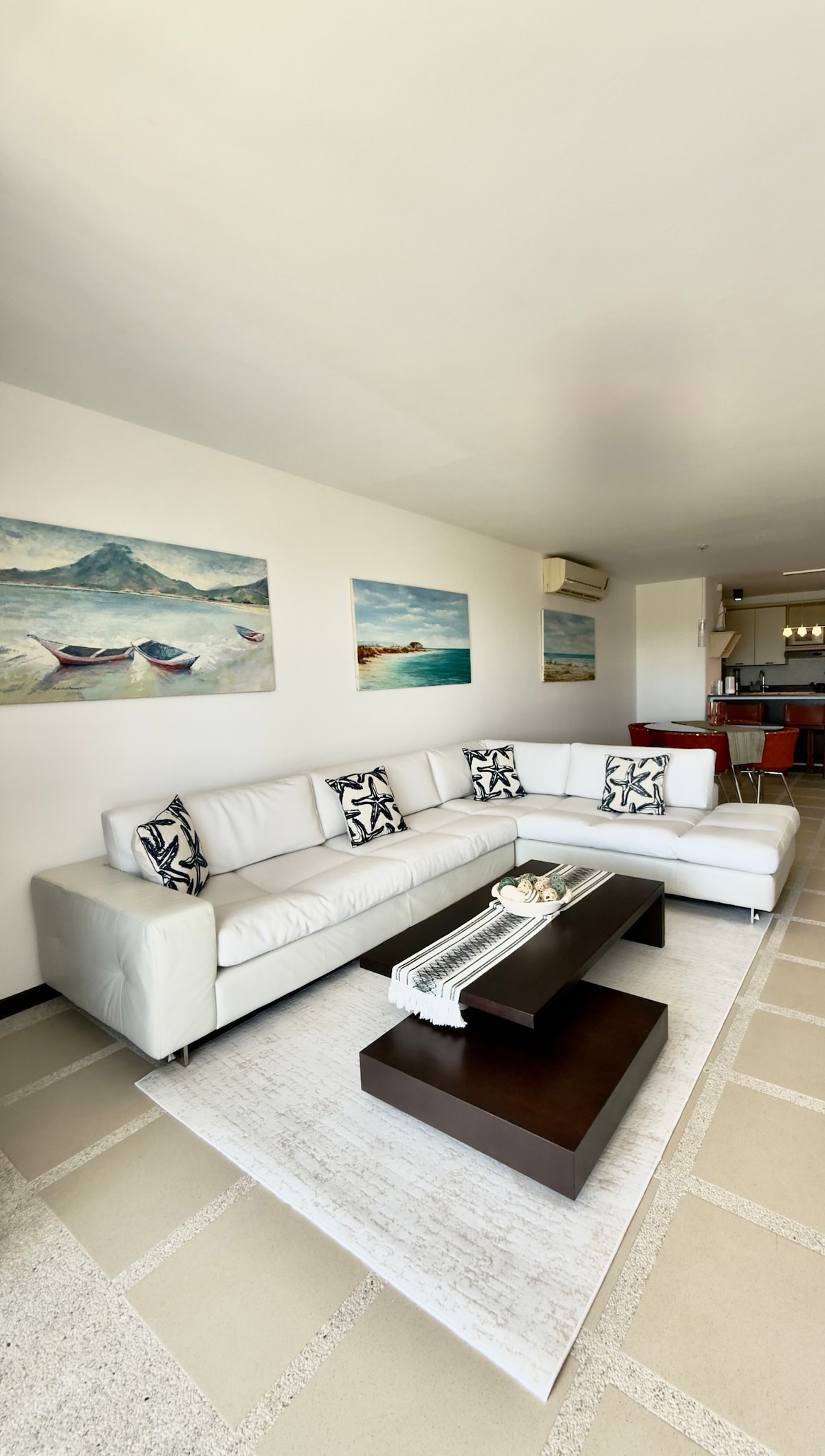 A renovated apartment with all the comforts for 7 people, only a few steps from Playa Parguito! With electric backup and constant water. Two pools, restaurants, and tennis court. We have awnings, chairs, cava, beach rackets, tennis rackets, surfboards and bodyboard. WiFi, 3 TVs with Netflix, Star+, Disney+, AppleTV and MagisTV Washer-dryer, fully equipped kitchen, separate water tank and two central air conditioners. Covered parking and 24/7 surveillance