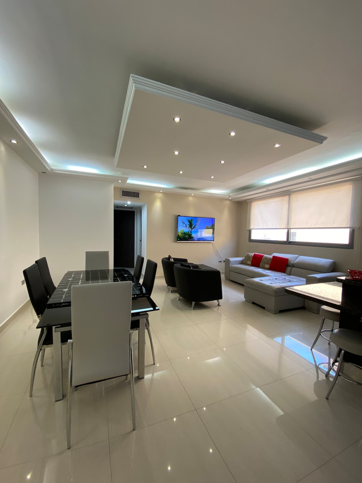 Enjoy the originality of this quiet and central accommodation with fiber optic internet and equipped with all services. Private access to the beach and beautiful social areas, spectacular pool, caney and direct contact with the sea, unbeatable location. since it is a 5-minute walk from shopping centers (Caribean mall) and important hotels such as Maremares and the golf course. This apartment is newly remodeled and equipped. It is delivered with linen, towels, water, coffee, etc.