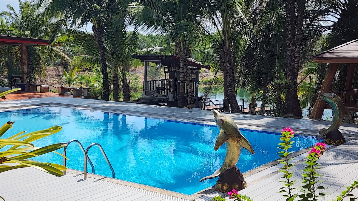 Spacious modern pool villa nestled in the lee of a mountain alongside the bank of a meandering brook offers a secluded and peaceful retreat Surrounded by Nature and Wildlife with a spectacular mountain view. This villa has three separate bedrooms each containing a king size bed with air conditioning and en-suite bathrooms with bathtub, Suitable for 6 guests and if required 2 extra single mattresses can be set up on the floor to increase the maximum number of guests to 8 guests.