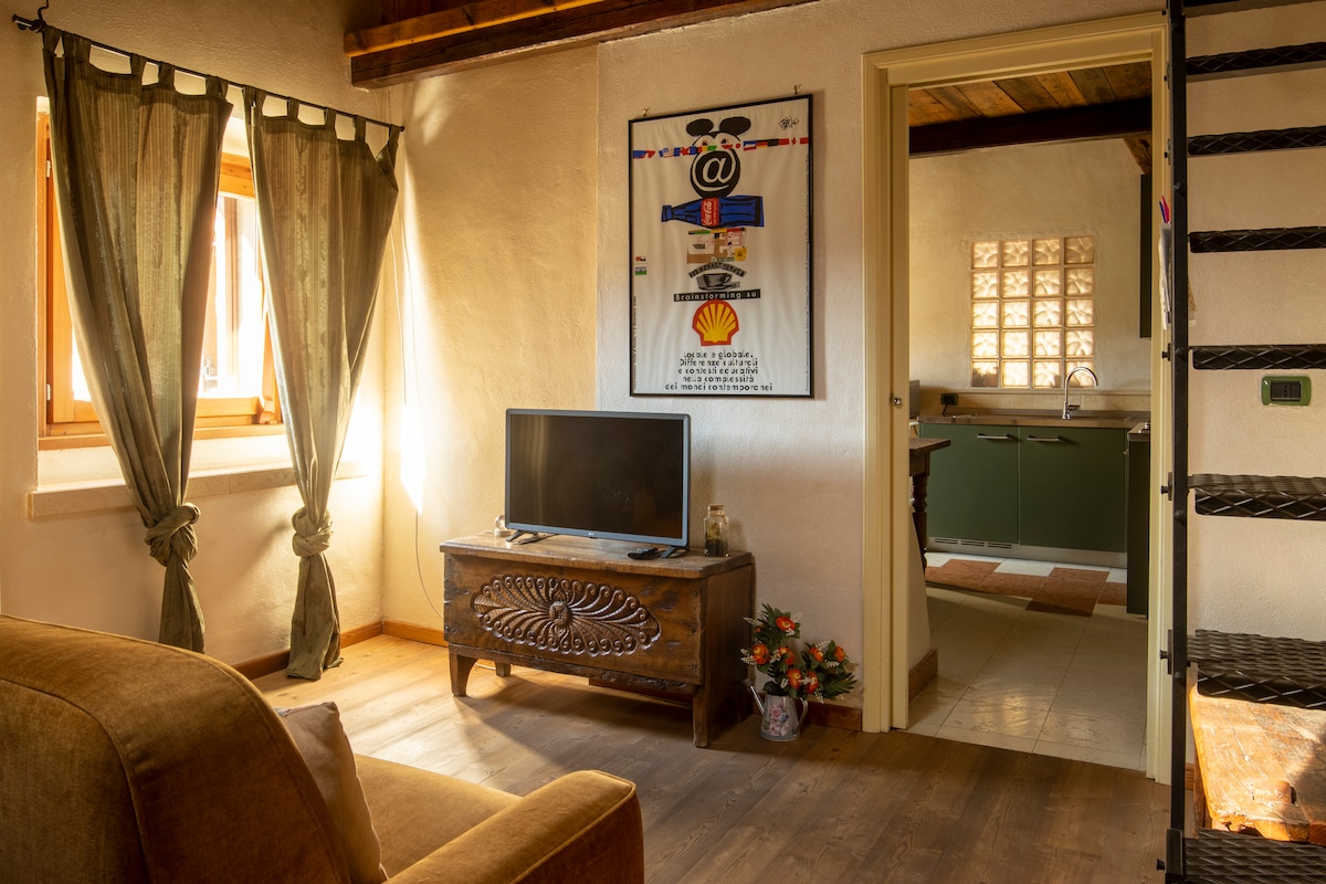L’appartamento si trova in pieno centro storico ad Aosta, di fronte alle Porte Pretoriane a 7 minuti a piedi dalla stazione ferroviaria di Aosta. L’alloggio è disposto su due piani: al piano inferiore c’e il soggiorno con angolo cottura accessoriato con tutto l’occorrente e un divano letto a 2 posti e al piano superiore ci sono la camera da letto con letto matrimoniale o 2 letti singoli e il bagno con doccia e lavatrice. TV lcd, forno, rilevatore gas. Wi-Fi in tutto l’appartamento.