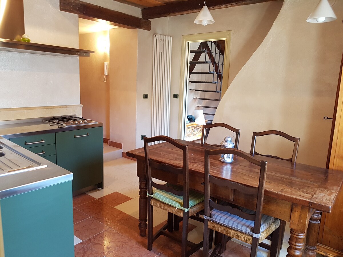 Beautiful and large house on two floors, in the historic center, leaning against the Roman walls. On the ground floor, on a courtyard, there is the sleeping area with two double bedrooms and two bathrooms, on the first floor a living room with fireplace, a dining room, kitchen, bathroom/laundry. A large terrace with pergola overlooks the mountains and bell towers. Very quiet, great charm.