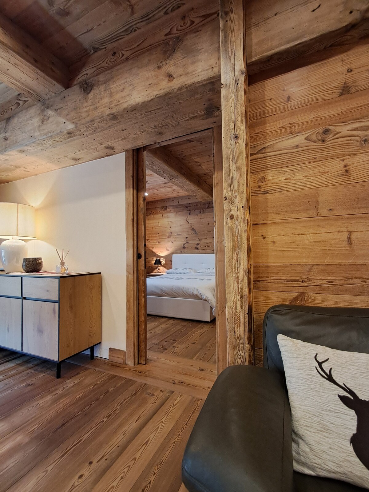 100 metres from the shopping area of Courmayeur and only 80 metres from the bus stop for the ski lifts. Also ideal as a stage of the Tour du Mont Blanc. Beautiful alpine accommodation of 140 sqm, with a charming, refined design and fine materials: two double bedrooms with en-suite bathroom, large kitchen and bright living/dining area, sleeps 4 in total Ski box/luggage storage and free private parking space with direct access to the accommodation. All in a refined mountain setting.