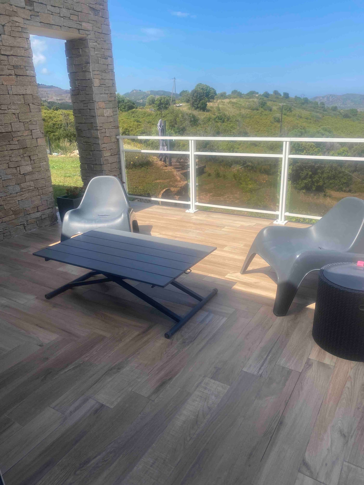 Charming new 2-room, modern, and comfortable. 2 minutes from Mount GOZZI (hiking), and the famous Gulf of Lava. (10 minutes From the Sea) Fully equipped kitchen, air conditioning, walk-in shower, separate toilet. 160 bed and bultex sofa bed. Washing machine and dishwasher. Very well equipped with all amenities. Large outdoor terrace with views of the Mountain. Close to a large shopping area, Auchan and Grand Leclerc. Very well located to visit the entire west coast of Corsica.