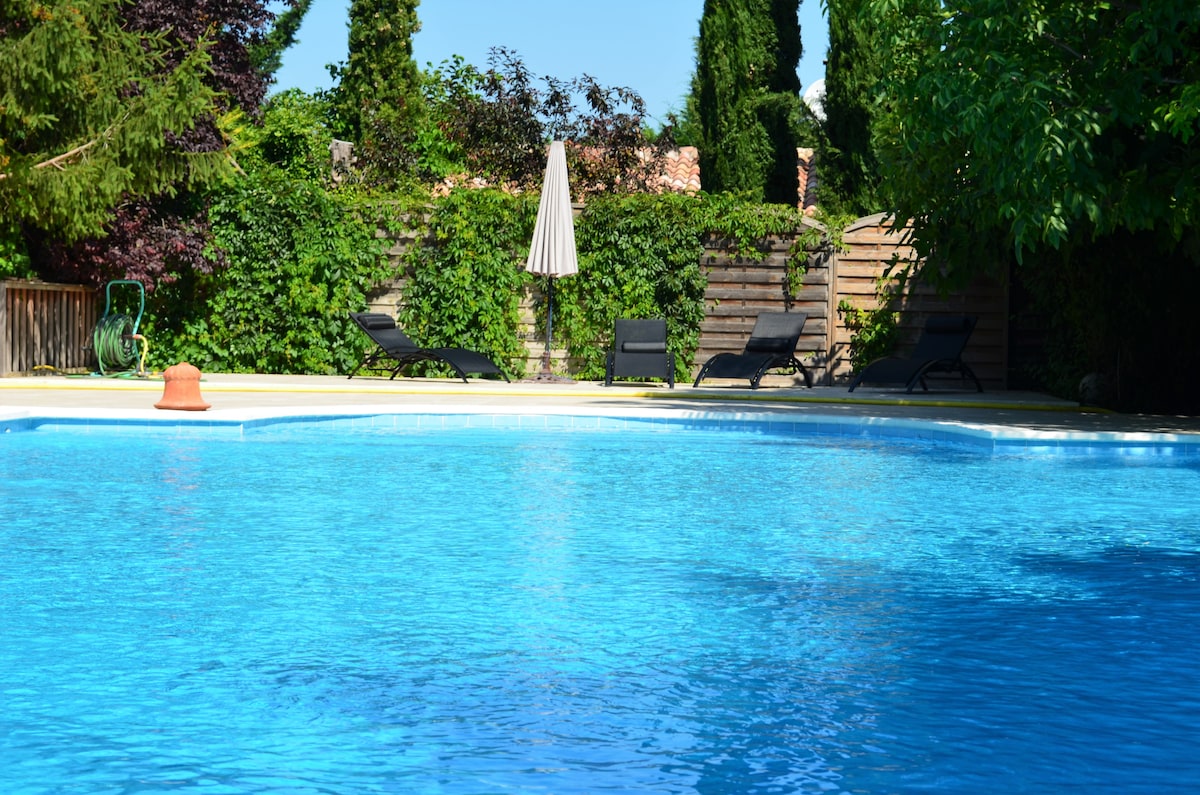In the heart of Provence in a large private property, independent apartment with 1 bathroom (shower), 2 bedrooms with double bed ideal for couples, terrace overlooking the garden. Shared pool. You are 5 minutes from Isle sur Sorgue and its famous antique dealers. Lots to do in the area Descent of the Sorgue by canoe or kayak Tree climbing Great hiking Golfing possibility to park your motorcycles under shelter free parking TV / WiFi hair dryer coffee maker
