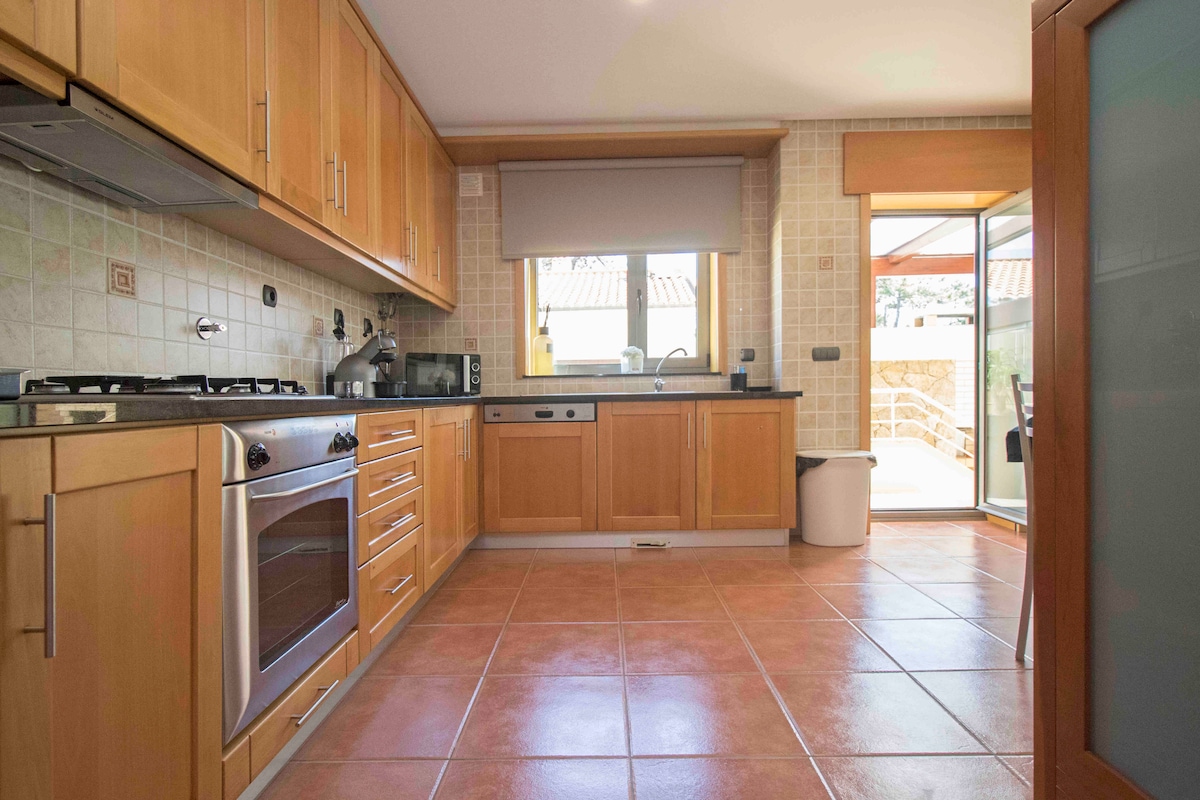 Passar os dias de verão em família ou com os amigos, numa casa com terraço para refeições ao ar livre, churrasqueira para os grelhados em dias de sol e um jardim relvado para usufruir depois da praia.* Composta por dois quartos com cama de casal, casa de banho, cozinha, zona de refeição e sala de estar. A 15min. da praia, perto de vários restaurantes, cafés, bares, padarias, mercearias, hospital e farmácia. Aguardamos a sua visita! *Jardim/BBQ/Lavandaria partilhada com apartamento do 1⁰piso.