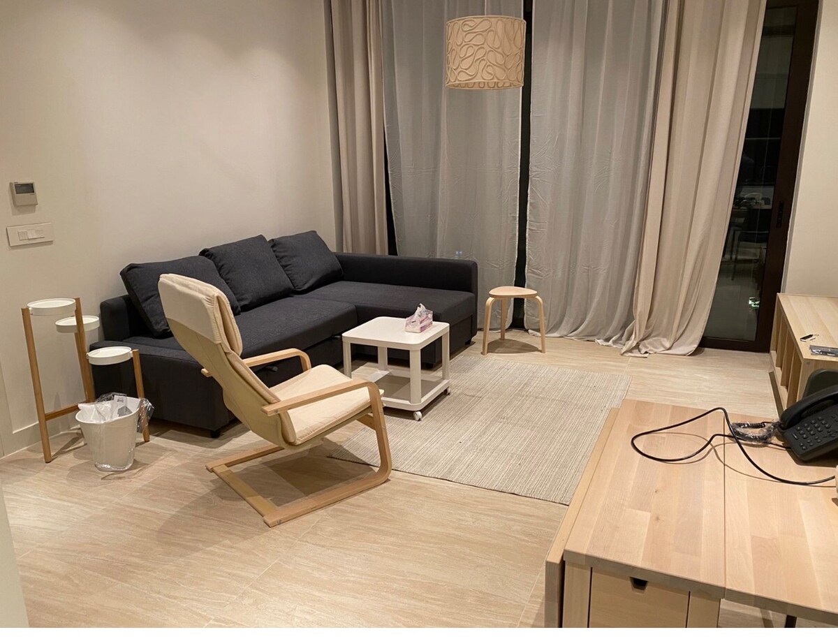 Homey + comfy, WIFI. Near MARRIOTT AL MANARA Kick back and relax in this calm, stylish space.