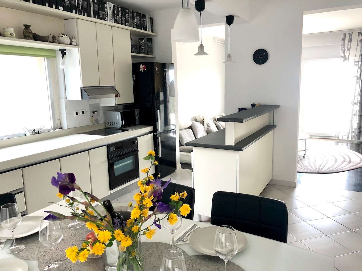 I would like to welcome you to my cozy house, modernly decorated and fully equipped, close to the sea, at walking distance from beaches (100 m), 50 m from water park /spa center, bus stop. Green and silent private street. Enjoy :)