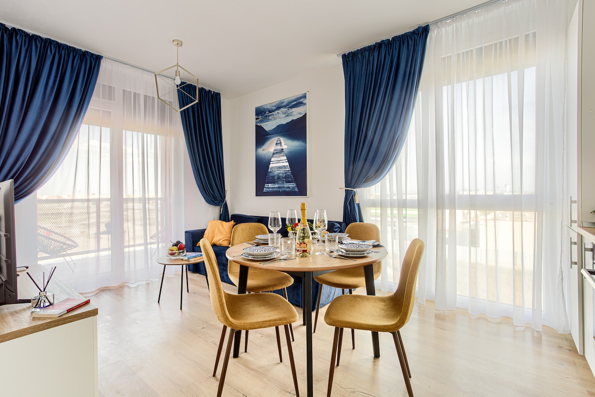 The apartments are located in the city center, in a great area, just 2 minutes from Theater, restaurants, terraces or park. The apartments are composed of two bedroom with king size beds, a spacious living room with sofa bed, fully equipped kitchen and two bathrooms. The apartments are designed with the idea of providing a comfortable space for couples, families, solo travelers or business who are looking for a memorable stay in Arad. Enjoy a stylish experience at this centrally-located place.