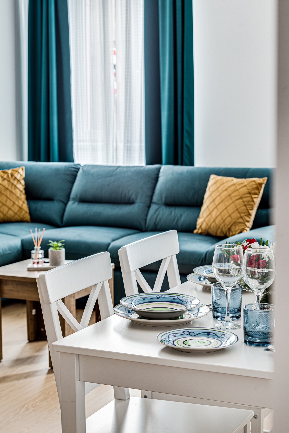 The apartments are located in the city center, in a great area, just 2 minutes from Theater, restaurants, terraces or park. Each apartments features a bedroom with king size bed, a spacious living room with sofa bed, a fully equipped kitchen and a private bathroom. The apartments are designed with the idea of providing a comfortable space for couples, families, solo travelers or business who are looking for a memorable stay in Arad. Enjoy a stylish experience at this centrally-located place.