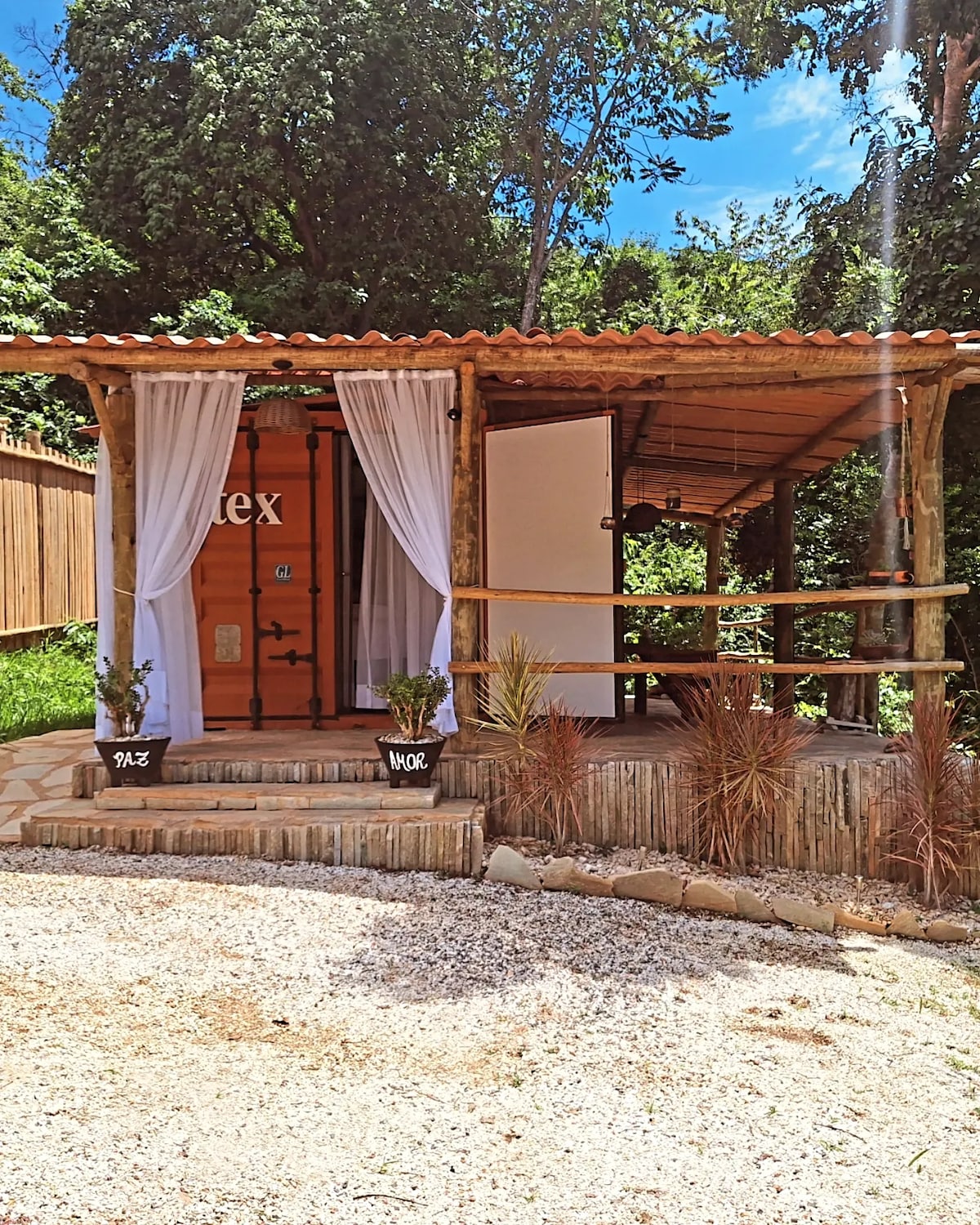 Enjoy the sounds of nature when you stay in this unique place. Jardim Woo is a paradise in itself! It is an RPPN, an environmental preservation area in the middle of the cerrado! Amid an incredible view, it allows the guest exclusive access to the Barriguda Creek! From the bungalow bed or Jacuzzi you can contemplate the Serra dos Pireneus and the Dhyana waterfall, simply beautiful and exuberant! We are a 30m2 container bungalow complete in comfort and sophistication! Total immersion in nature!