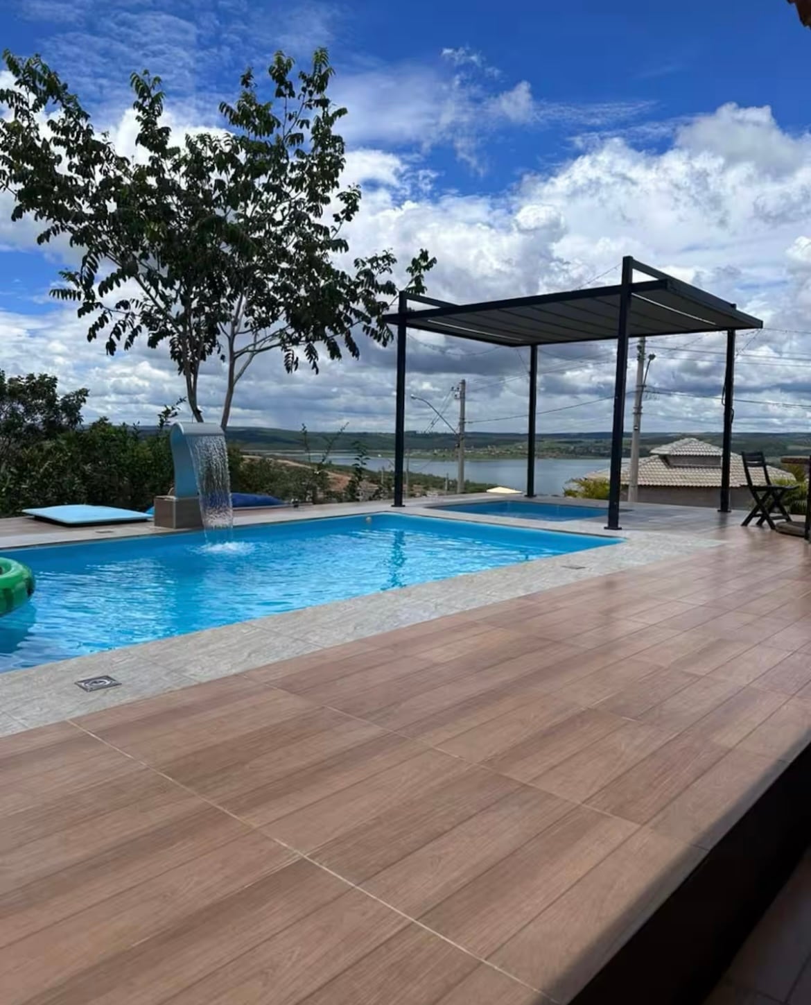 We are 80 km from downtown Brasilia. Bring the whole family to this great place with plenty of room to have fun. We offer a breathtaking view of Lake Corumbá 4, a fantastic sunset. We have 5 bedrooms, one of which is a suite, a full kitchen equipped with an industrial stove, refrigerator, microwave, oven and kitchen utensils, an outdoor area with a deck, a spa with electric heating and chromotherapy, a swimming pool and spa with solar heating, a rest area, a barbecue grill, an oven and a wood-burning stove.