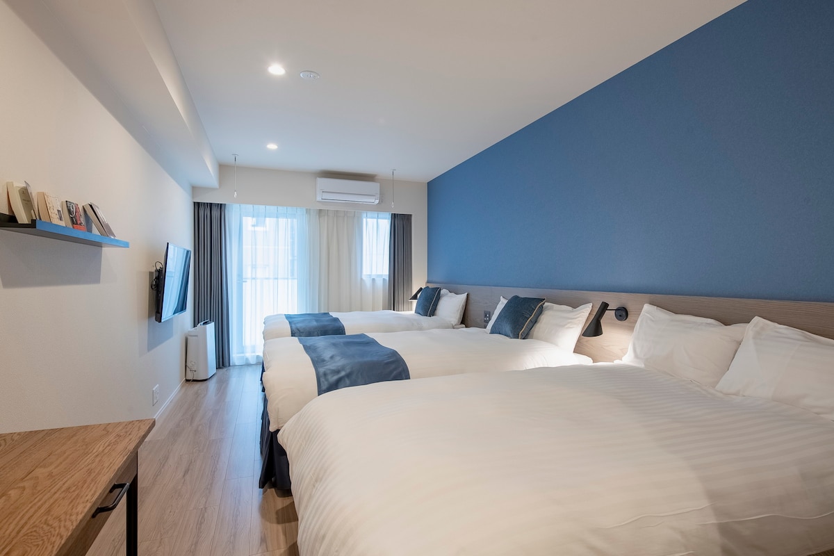 It's convenient for the whole family to go anywhere at this centrally-located place. Two king beds in the room, suitable for family and friends The floor is comfortable, and the space is private.Suitable for up to 5 people. The open kitchen is fully stocked with induction stove, pots and dishes, wanting to eat home-cooked meals, Japanese simple cooking is not a problem The bar is connected to the living and dining space, whether it's a morning coffee or a dinner, everything is just right. The sink is designed with a separate bathroom, so you can stay with a few people at your own pace Providing Bluetooth stereo, listening to music and taking a hot bath at night in Japan is the most relaxing moment of the trip. There is a projector in the room, so you can easily connect the commonly used digital streaming platform Washing machine, air purifier, iron and spacious closet, you need, we are all ready The space is just right for one person to work quietly at the bar or stay with friends or family for a few days Be at home, each comfortable.