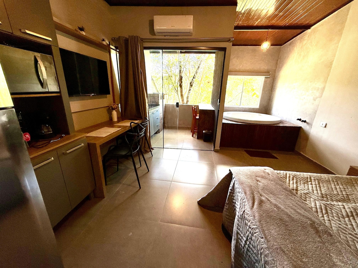 🌴 Praiano Getaway in Gleba Palhano ✨ A touch of luxury with a beach vibe for your stay 🛌 Suite with air conditioning, blackout curtain and bedding 🖥️ Decorated rooms: Smart TV and ceiling fan 📶 High-speed internet 🅿️ Private garage 👮 24-hour front desk 🏊 Swimming pool, gym, game room, coworking, collective laundry and grocery store 🐾 We accept pets! One small animal allowed per stay. 📍 Privileged location ✔ 300 meters from Aurora Shopping ✔ 500 m from Lake Igapó