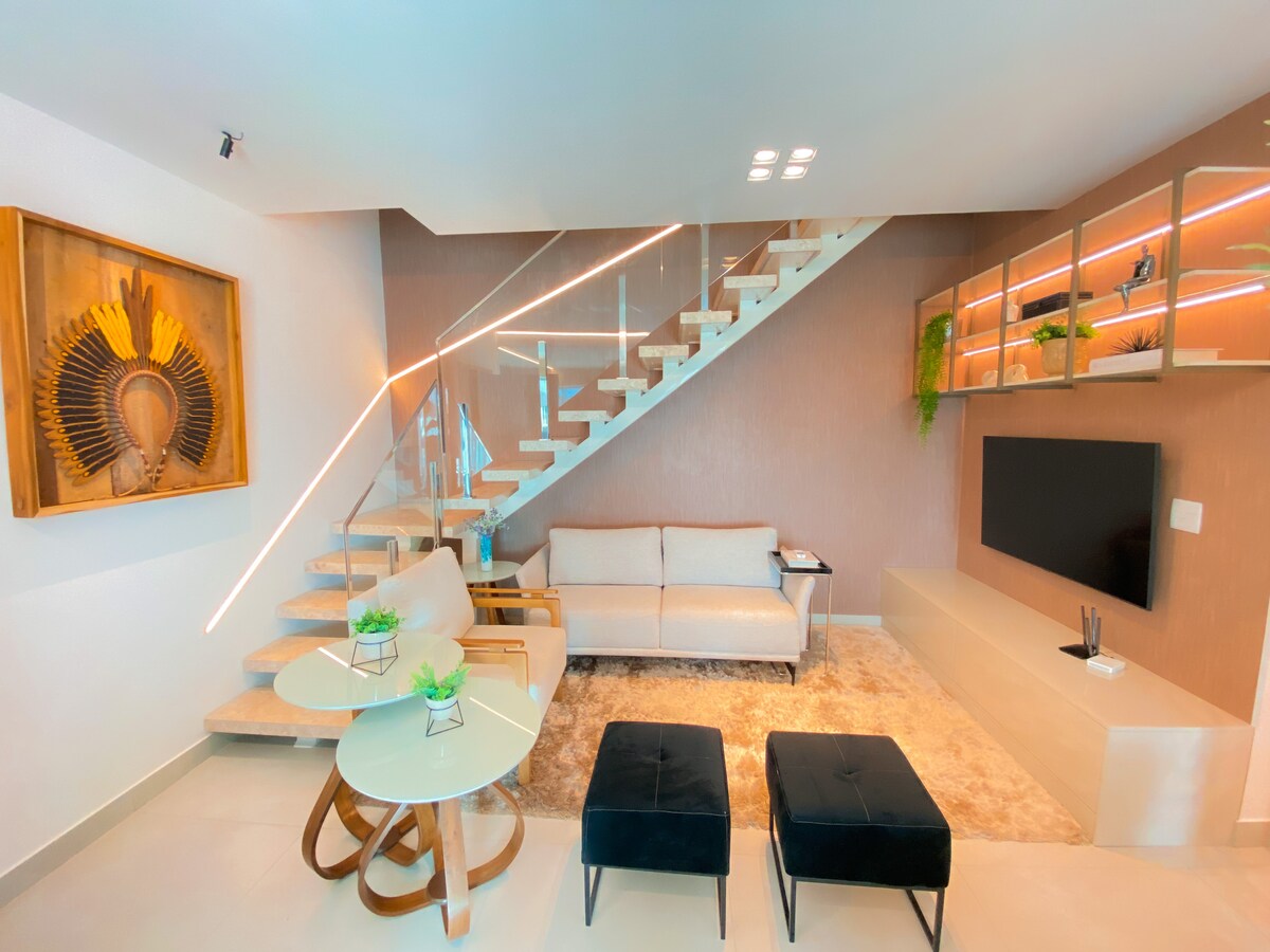 🏖️ AMAZING PENTHOUSE 180M FROM PRAIA DO FORTE! Spacious penthouse in a NEW and Exclusive building, in an upscale neighborhood of Cabo Frio! SPACE: → 5 bedrooms (3 en-suites) with air conditioning → Private pool 🏊 → Terrace with barbecue 🍖 → Full kitchen 🍽️ → Air conditioning ❄️ → Large Wi-Fi Room and Smart TV 📶 → Bed and bath linens 🧼 → Washing Machine 🫧 BUILDING: → Garage 🚗 2 SPACES → Elevator and security 🔒 🌟 Guarantee your reservation now and enjoy unforgettable days!