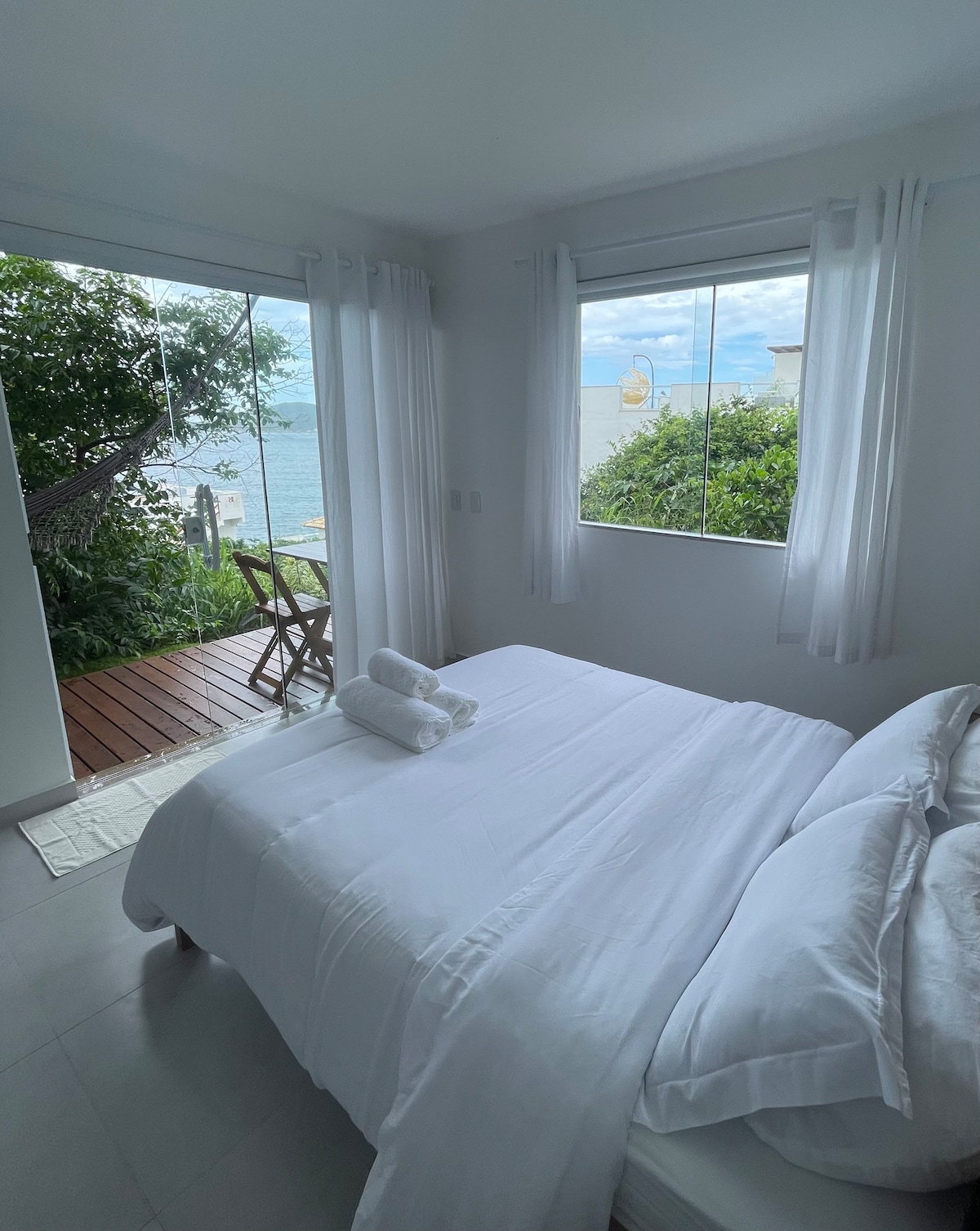 The Garda Azul suite is in Pontal do Atalaia and has a view of the sea and mountains. It has independent access and complete privacy. Full bathroom, minibar, closet and balcony overlooking the sea. Classic decor, quality bed linens, super comfortable bathroom: everything you need to enjoy the best beaches of Arraial do Cabo. It does not have access to the terrace or pool. A perfect space to relax with family or friends.