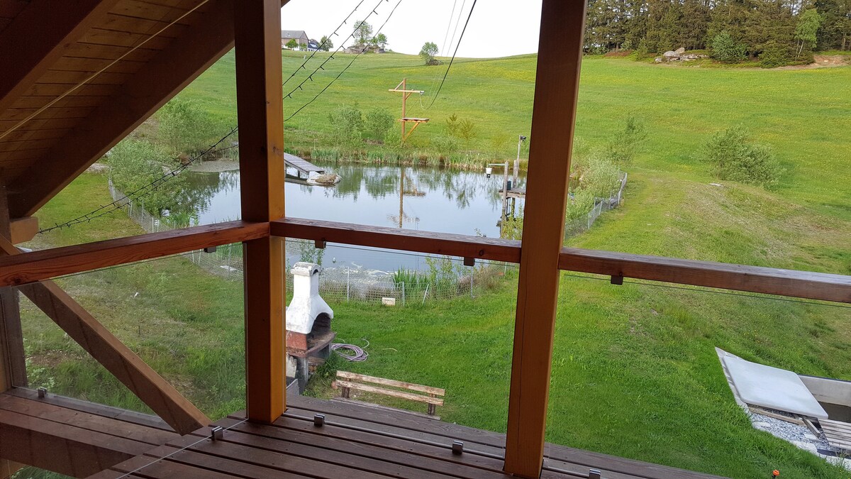 Pond cottage with kitchenette, dining area and wet cell on the ground floor, also spacious covered terrace, barbecue area and play tower available. In the attic is the sleeping area with its own toilet. From the roof terrace, you have a magnificent view over the 2 connected fish ponds. Parking spaces for cars, tents or campers are available.