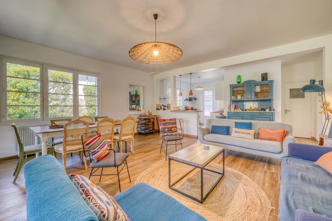 Welcome to our unique loft-cabin, nestled in the heart of Arcachon, a short walk to the beach, market, train station and shops. Here, everything is within walking distance for a stay without constraints and all smoothly. From the entrance, let yourself be surprised by a large greenhouse bathed in light, a friendly living space with foosball for young and old. The warm wooden living room, its designer furniture create an atmosphere that is both atypical and soothing.