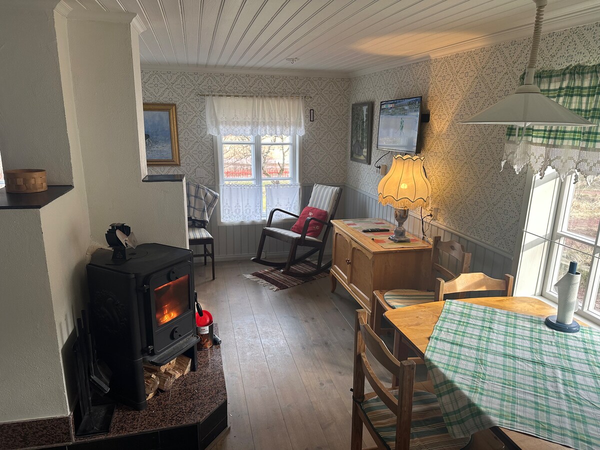 Det lilla huset med stor potential, stora vistelsevänliga uteytor, två altaner och stor gräsmatta, tillgång till fristående vedeldad bastu, eget fiskevatten och båtplats. Tillgängligt till grill finns(egen kol medtages) även gasolgrill finns Det finns även ett större hus på gården Samma adress, Mangårdsbyggnaden, bastun och grillar delas mellan husen. Cyklar finns 3 st för vuxna, gäller det barncyklar fråga efter tillgänglighet. Båt finns att hyra på orten fråga efter tillgänglighet