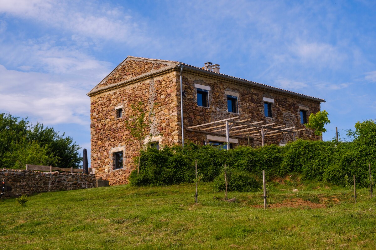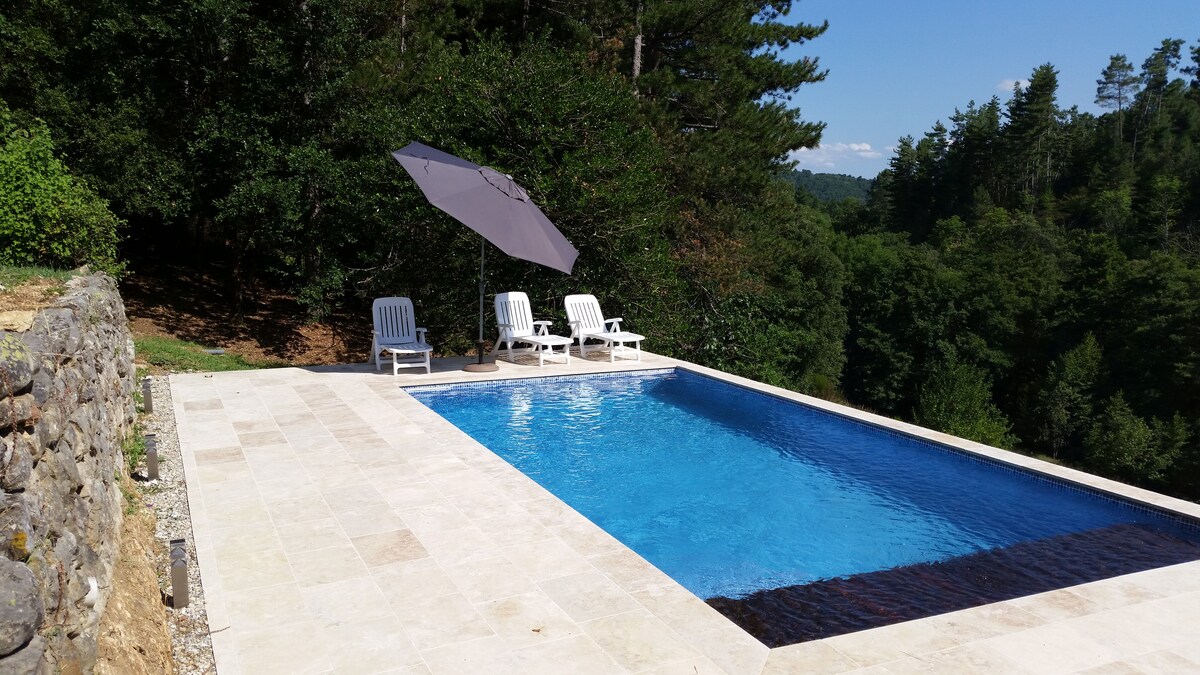 Renovated stone house, quiet, with view, pool