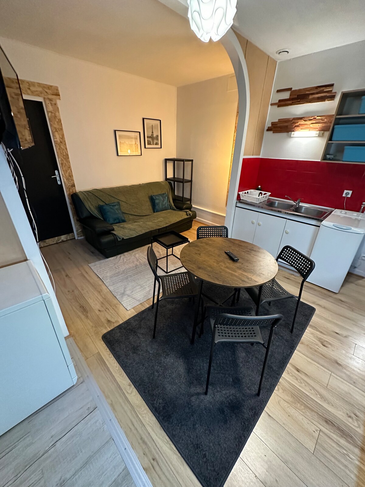 Bright apartment of 32 m² completely renovated in the heart of Reims, in a quiet building. 1 bedroom (bed 140x200) with dressing room, bathroom, equipped open kitchen, living room with sofa bed, TV and Wi-Fi. Private indoor parking with electric vehicle charging station. Linen provided. Ideal for a single person, a couple or a short professional stay. 1.5 km from the train station, close to shops, restaurants, cathedral, Rue de Vesle and large Champagne houses. Self check-in.