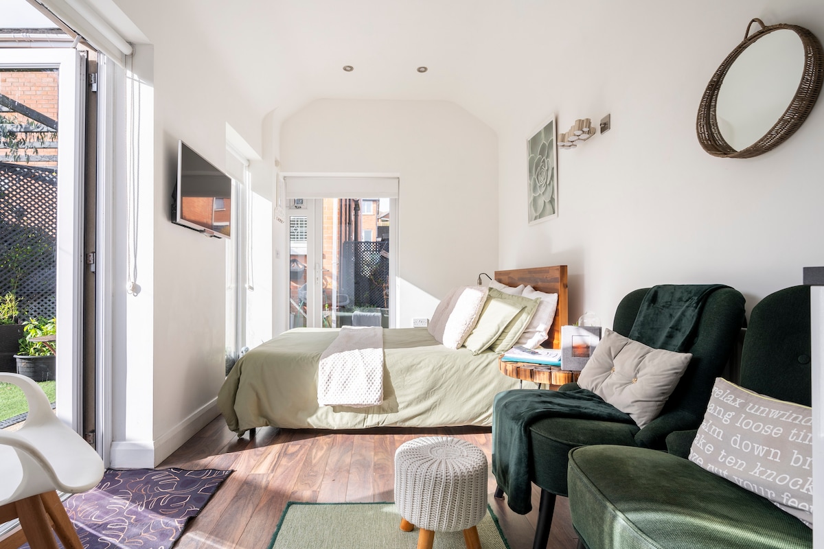 Studio apartment in popular Bangor West residential area. 5 minute walk to train station. 15 minute walk to beach and coastal path through wooded glen and 20 minute walk into Bangor town centre. 2 minute walk to local shop, restaurant and bar. 250sq ft self-contained studio at back of property containing a bathroom, with large shower and open planned kitchen/living area. Comfortable double bed for sleeping. Guests also have access to an 8 seater hot tub with 85 jets and a garden area . *