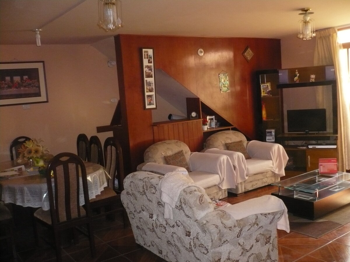 At Cataleya House, the most important thing is the quality of service to our visitors. We offer our "Yura" apartment, located on a 3rd level, independent and fully furnished and spacious, with a kitchen, living room, dining room and bedrooms, carefully decorated with paintings. In addition to this, we have an entertainment room fully implemented with games, 3 terraces decorated with paintings and sculptures by renowned Arequipa artists.