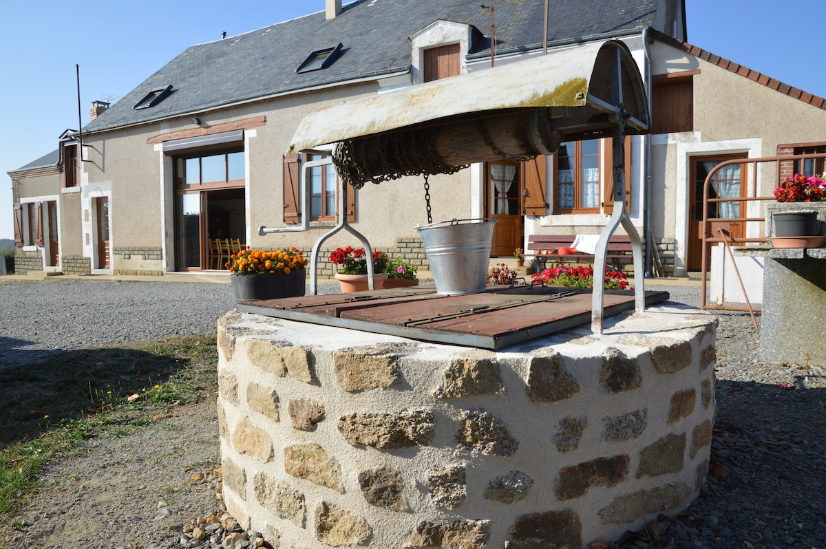 Recently renovated Berry family farm to welcome you to the confines of Boischaut Sud, the Creuse Valley, the Brenne Regional Nature Park and the country of George Sand. 5 bedrooms with individual bathrooms, one of which is equipped for people with reduced mobility. Large living room furnished around a large table and wood-burning stove. Not suitable for any festive and noisy gathering due to its adjoining nature and its location in the hamlet where calm prevails