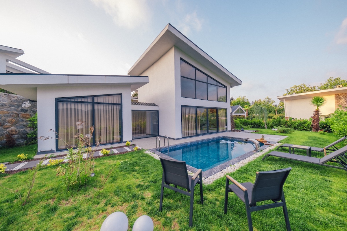 "Your New Home in Nature" in Sapanca's Hidden Garden Green in summer, white in winter... A warm pool in the snow, the songs of birds in the trees... A pleasant barbecue by the pool in the evening, a delicious hot wine by the fireplace at night... Plenty of conversation in the garden of your house... A magnificent sleep in the heart of nature, waking up to a calm nature by greeting "Sapanca Lake" in the morning... "Trio Palazio" beats in the heart of Sapanca!!!Embracing Lake Sapanca, it awaits its guests with its team.