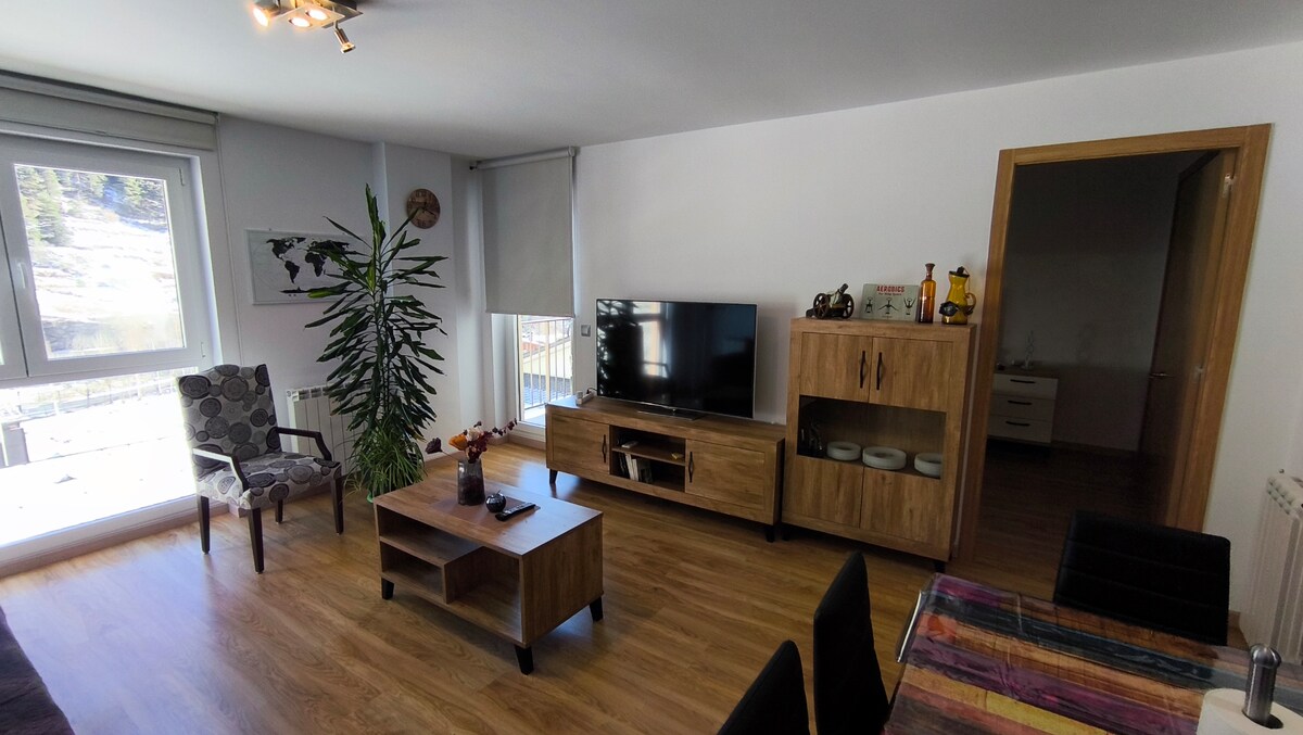 Forget your worries and enjoy the surroundings. The apartment has a large living room and magnificent views of the mountain; a kitchen area integrated into the living room, a balcony, two double bedrooms and a bathroom with a bathtub. You can access, interconnecting through the complex, the Josep Serra chairlift that connects with the Arinsal ski resort in winter and the Comapedrosa natural park is only a few minutes away. The downtown area of Arinsal is 400m.