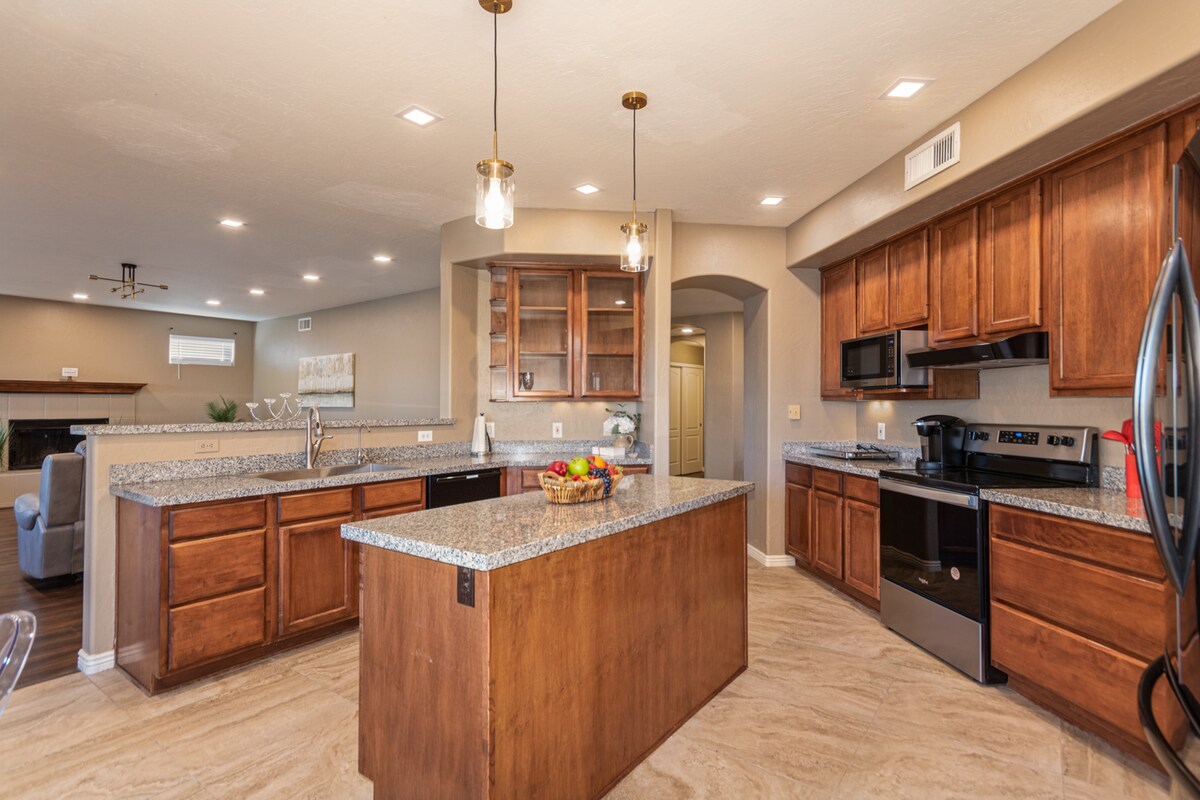 Welcome to our stunning Air BnB in Casa Grande, Arizona! Whether you're here for work or fun, our modern and spacious home is the perfect choice. Explore the nearby Casa Grande Ruins National Monument, one of the best-preserved prehistoric structures in North America. Or head to nearby Picacho Peak State Park for a hike with stunning views. We also offer easy access to major hospitals like Banner Casa Grande Medical Center and several big corporate businesses like Lucid Motors and PhoenixMart.