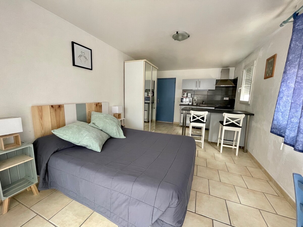 ☀️ Treat yourself to a moment of escape as a couple or with friends in a duplex studio close to the historic center of Aigues-Mortes. 🦩 Medieval town known for its famous 13th century ramparts and towers. You can visit its superb Salins du Midi, known thanks to the series "Ici tout commence". ☀️ Enjoy your stay to take a relaxing break by strolling through the typical small streets of the city and enjoying the beaches of Grau du Roi and La Grande Motte.