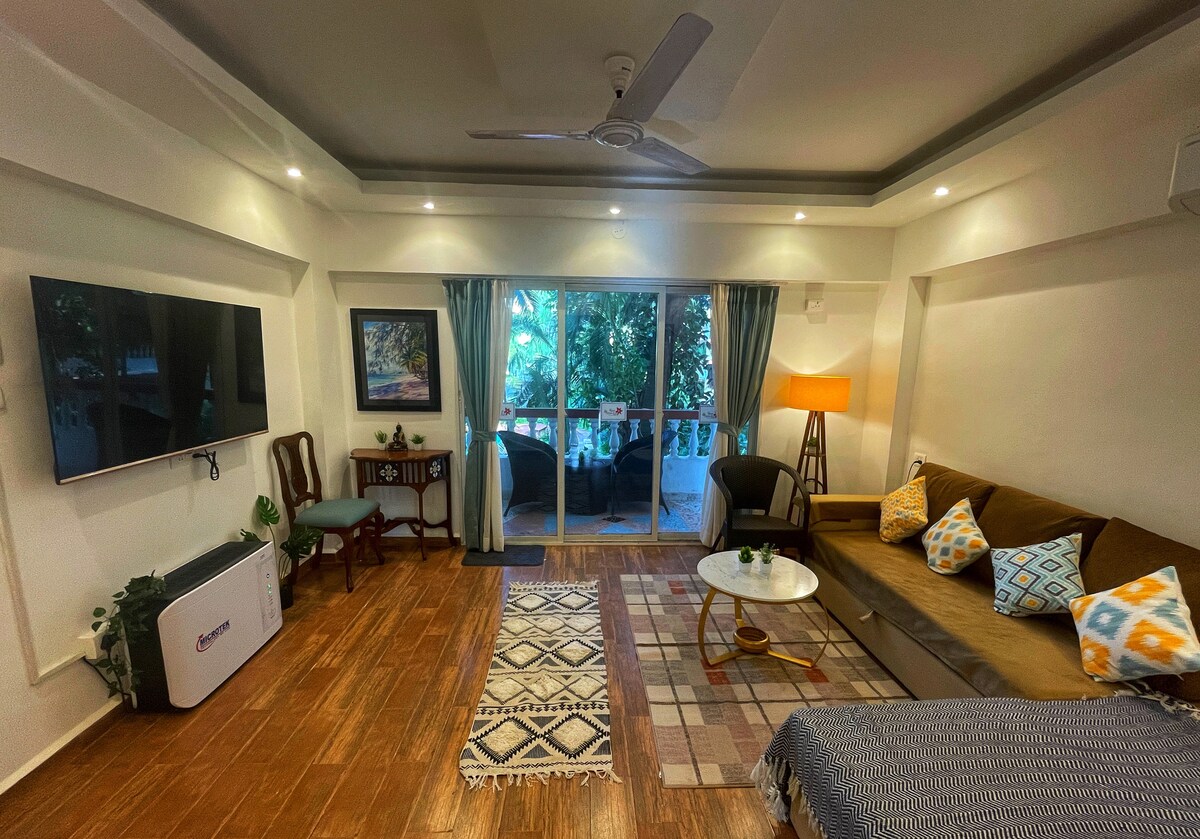 Luxury 1BHK| 5 mins to Baga Anjuna |Pool & Balcony