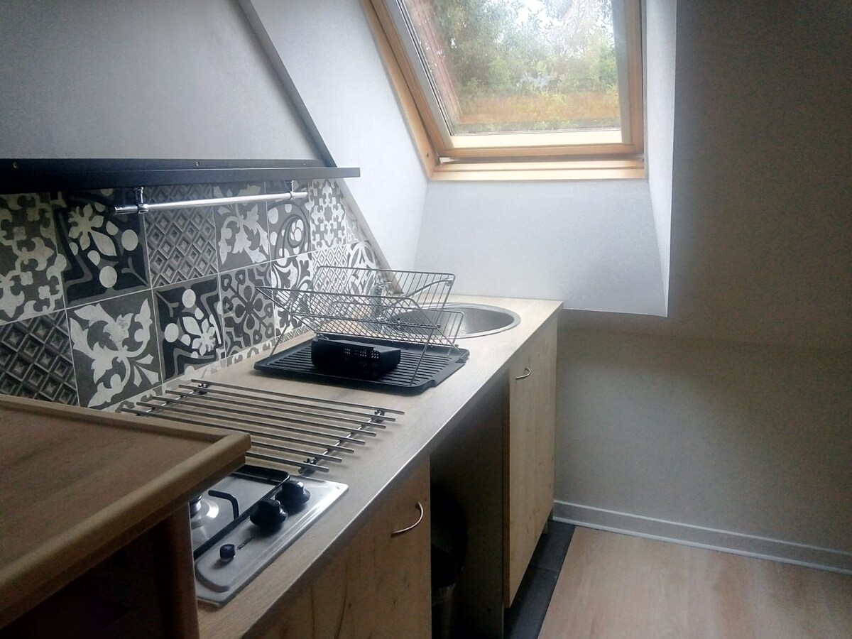Nice studio for 2 people: new, adjoining the owner's house and with independent entrance. - 2-person bed 140 cm x 190 cm ***NEW 2024 (replacing the sofa bed)*** - Dining area: table + 2 chairs - Integrated kitchen: induction cooktop, range hood, microwave, fridge, toaster - Bathroom (shower and toilet) - Table, chairs and clothesline available outside