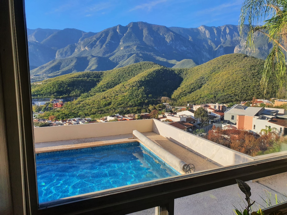 You'll love my place because of its large spaces and comfortable bedrooms. The kitchen is fully stocked, and the grill area is the ideal size to share with family and/or friends. The size of the main palm roof allows fresh air to flow, and you can spend long hours there by the pool. There are many areas of interest near my place, such as the Plaza de Santiago, the Boca dam, the Cola de Caballo, and I am 500 meters from Las Nubes.
