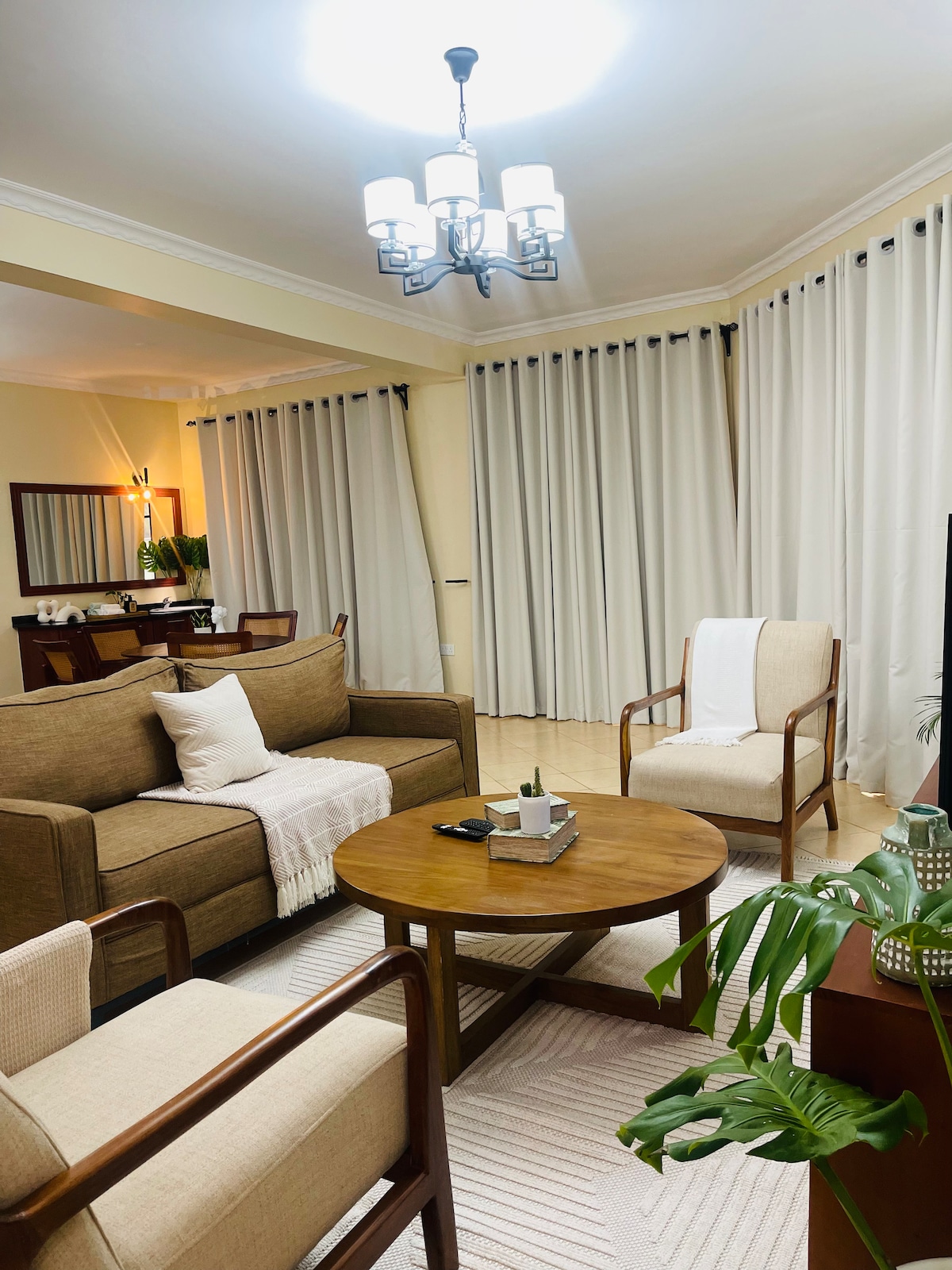 Forget your worries in this spacious & serene space in Arusha - Njiro. Your stylish 1-BDR APT on the 1st floor, designed for comfort & charm. Enjoy a fully equipped kitchen, a sleek bathroom, a tranquil bedroom & a cozy living room that opens to an outdoor dining area overlooking Mt Kilimanjaro. Ur 5-in-1 escape: comfort, style, nature, convenience & fun, all under 1 roof. 🌟Group travel? We got you covered with (5) 1 BDR APTS in the same compound, links below🌟.