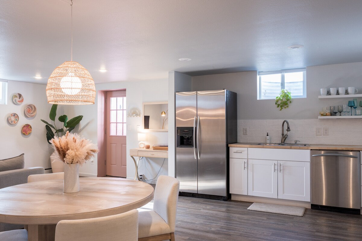 Escape to a private, newly renovated garden-level suite with your own fenced backyard and entrance — perfect for couples, remote workers, and dog lovers. Just minutes from I-70, enjoy easy access to Denver, Golden, and the mountains while relaxing in a quiet, cozy space designed for comfort and privacy. • Private entrance + fully fenced yard • Fully stocked kitchen • In-unit washer + dryer • 55” Smart TV • Dedicated workspace • Gigabit Wi-Fi • Free on-site parking