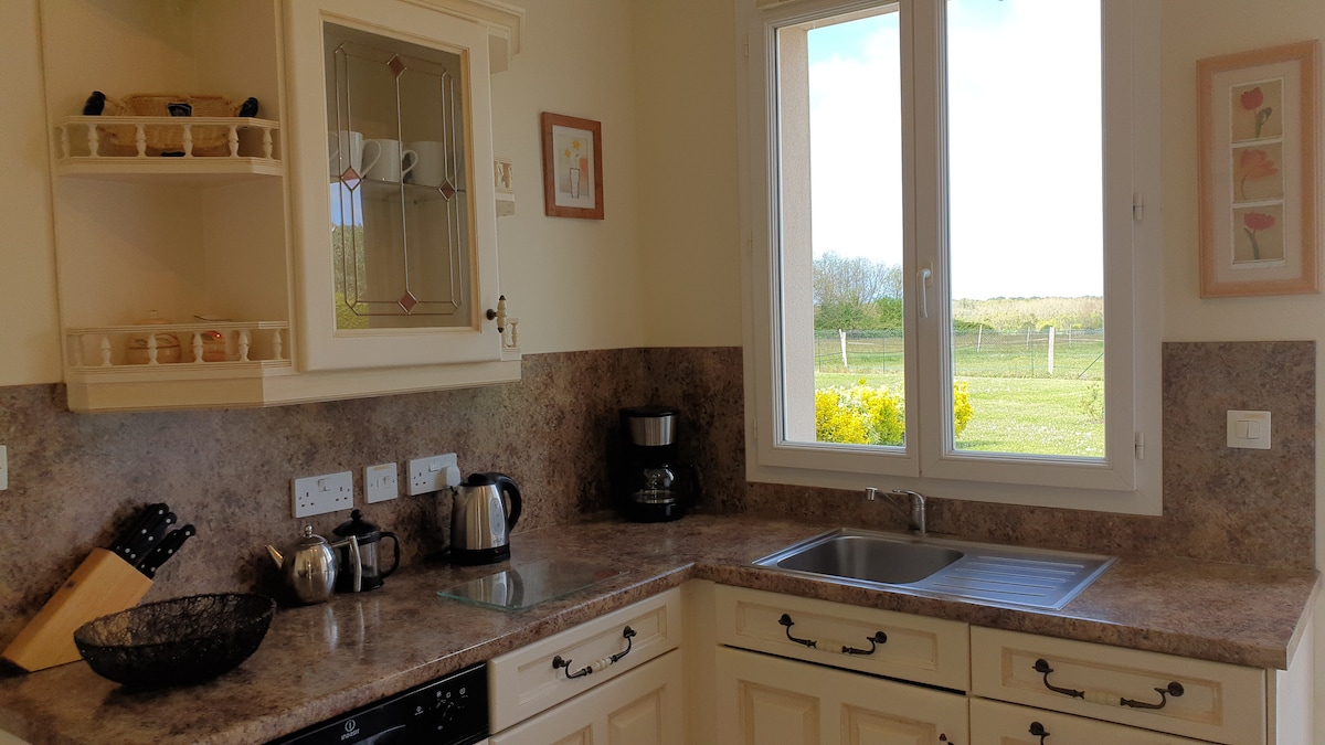 Welcome to Lavender View a charming little gite nestled in peace and tranquility with views of the countryside. It is composed of a fully equipped kitchen including filter coffee maker, toaster, kettle, microwave, cooker and dishwasher; lounge/dining room with sofa, TV with french doors opening on to the terrace and enclosed garden; large bedroom with 150x200cm (king size) bed, wardrobes and chests of drawers; on the terrace is a table and chairs, parasol and use of sun loungers and BBQ.