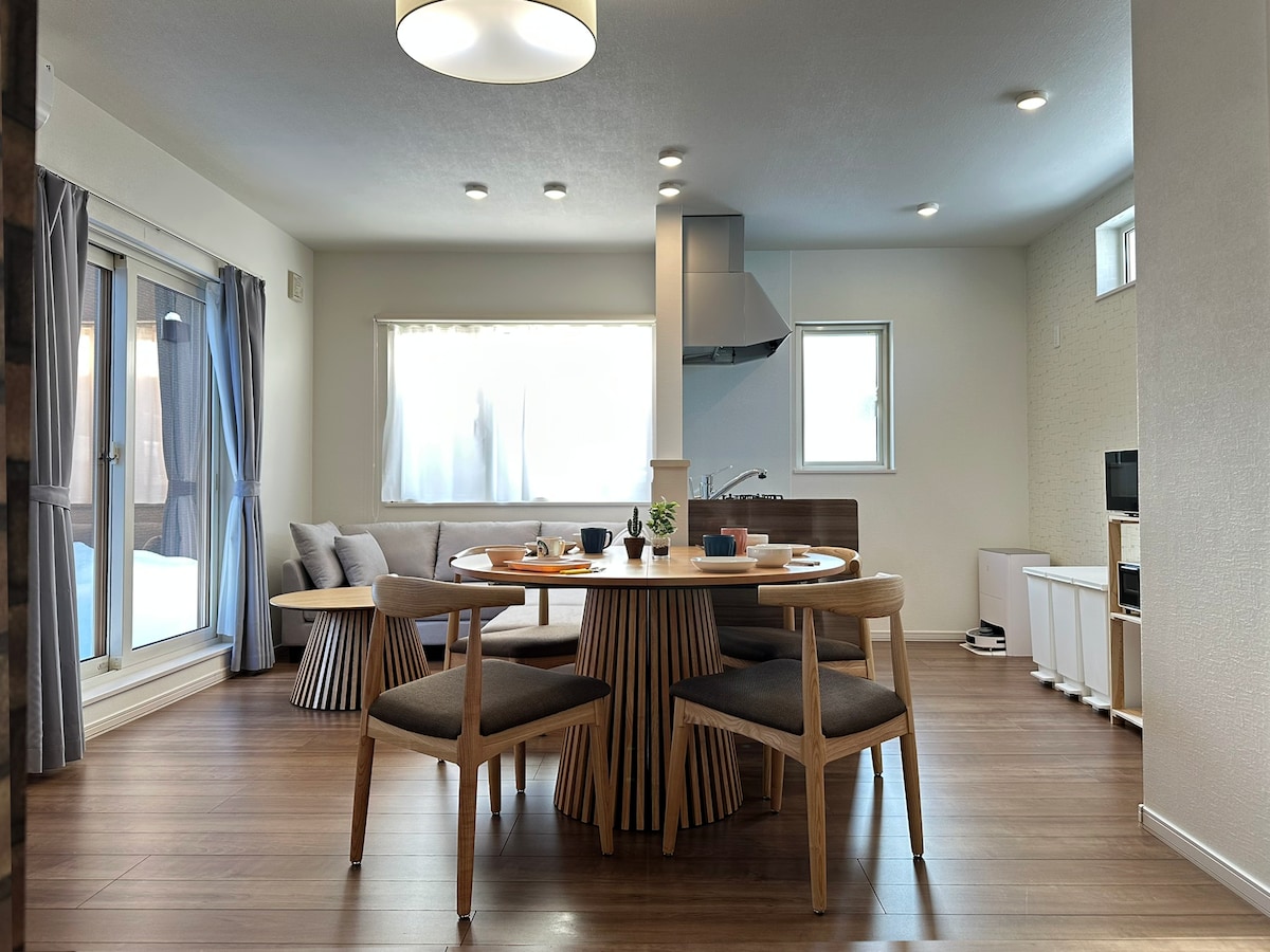 Experience life at the foot of Mt. Daisetsu, with natural snowmelt water flowing from the tap. Enjoy the charm of Higashikawa, a town like no other. Higashikawa Hinna is your perfect base for a memorable trip. Located near the town center, this cozy, newly built space offers a comfortable stay with a spacious living and dining area. Immerse yourself in the local atmosphere, and capture beautiful moments in this "town of photos."