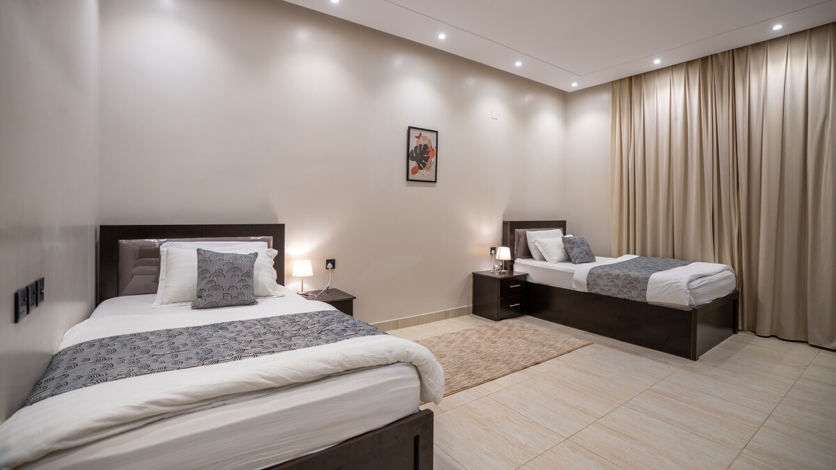 Luxury Aparthotel - Self Check-in Located in the heart of Abha on the belt Opposite the Green Mountain and the Fog Roundabout Less than 3 minutes from the high city, Abu Khayal Park and the Fog Walk Place details: Elegantly designed living room with 65-inch screen Coffee bar and morning breakfast + complimentary hospitality Bedroom with master bed, bathroom and full kitchen Internet open at 500mp Subscription to Shahid VIP + Shahid Sports Netflix + stc tv subscription Designed for you to meet all your needs To live a unique and special experience in Abha We wish you a pleasant stay...🤍