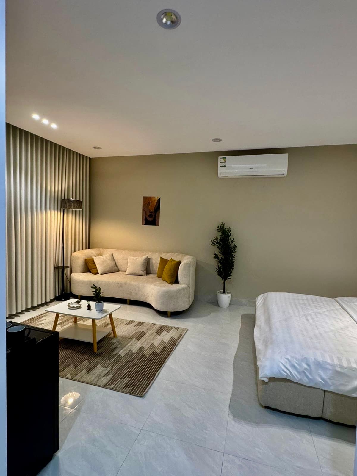Enjoy a high-end stay in a VIP hotel apartment, a room and lounge with a modern design and luxurious taste The accommodation offers a private entrance and self check-in that gives you complete comfort and privacy, with an elegant sitting area and a kitchen equipped with all your daily needs. Start your day with free coffee and enjoy your time. The residence is located in a prime location behind Al Rashed Mall, which facilitates access to restaurants, cafes and vital services in Abha